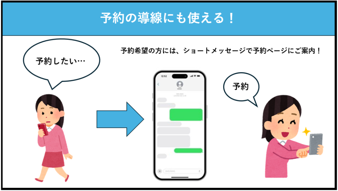 加えて、予約希望の患者さんにはショートメールを通じて予約ページへ案内できるため、電話応答からスムーズに予約へとつなげる導線としても活用できます。