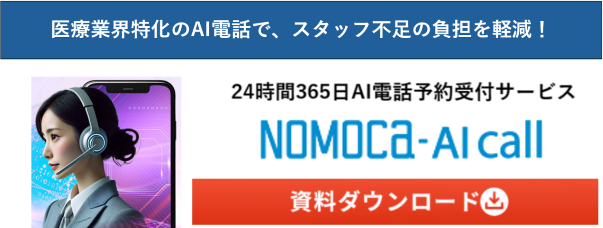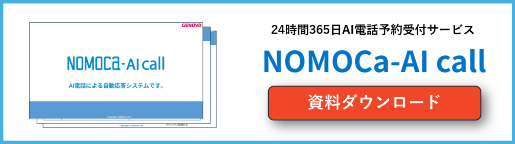 クリニック特化型のAI電話「NOMOCa-AI call」は、電話対応の業務を見直す有効な手段の一つです。