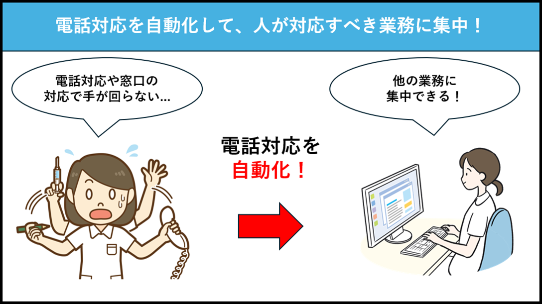 これにより、これまで受付スタッフの手を止めていた定型的な電話対応を切り離すことができます。