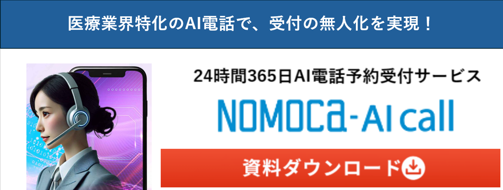 NOMOCa-AI callは、その土台を無理なく構築できる仕組みとして、受付無人化を段階的に進めるうえで大きく貢献できるサービスと言えるでしょう。