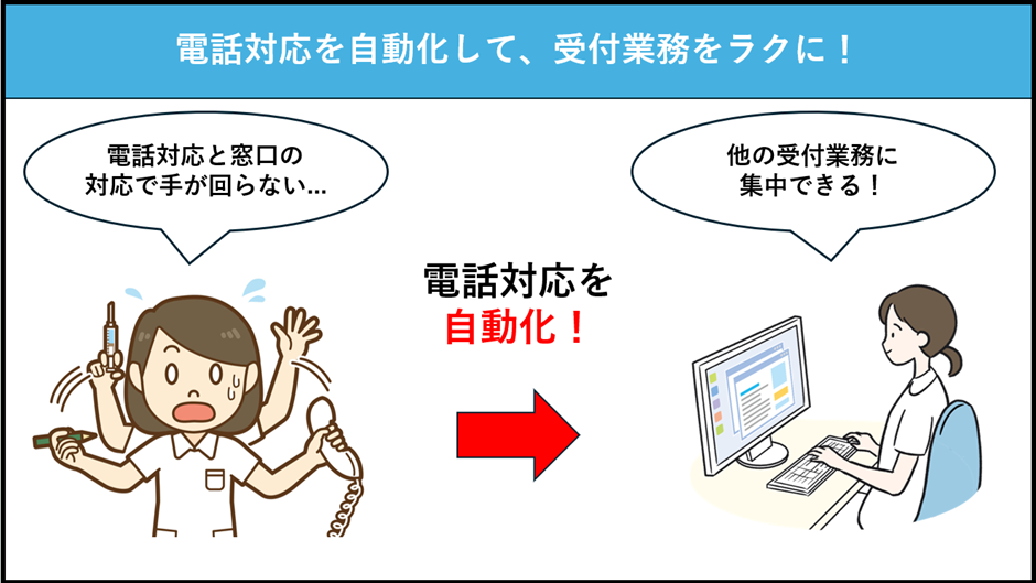 先ほどもお話したように、受付業務を効率化するうえで、多くのクリニックが頭を悩ませるのが「電話対応」です。