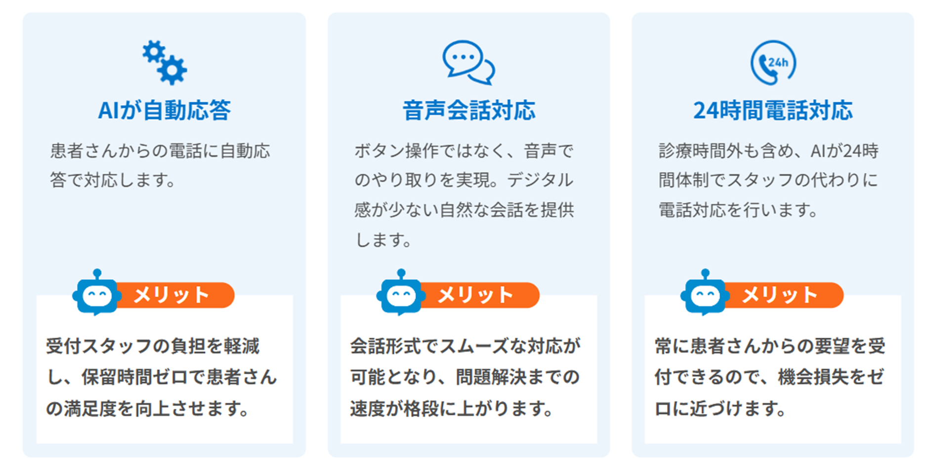 診療予約AI自動受付は、受付業務を置き換える存在ではなく、電話対応を整理し、受付全体を支える仕組みとして機能してこそ価値を発揮します。こうしたポイントを満たすサービスであれば、小児科の電話対応を現実的に改善していくことが可能です。