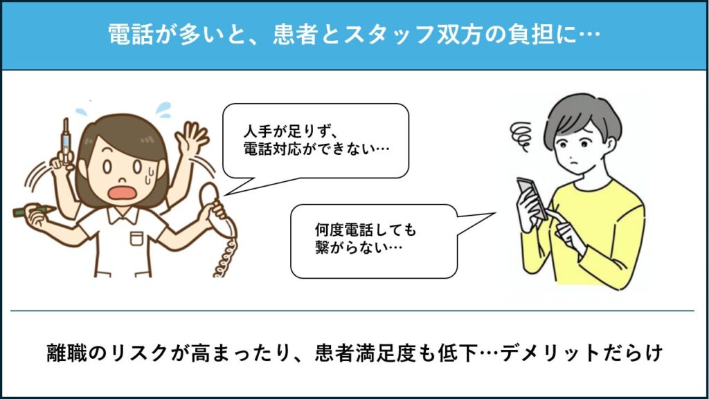 - 電話がつながらない不満が出る:患者は何度もかけ直す必要があり、不便さが受診意欲に影響することもある