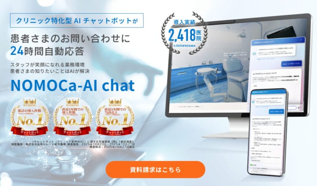 こうした受付体制の見直しを、クリニックの業務に合わせて無理なく進められる仕組みとして提供しているのが NOMOCa-AI chat です。