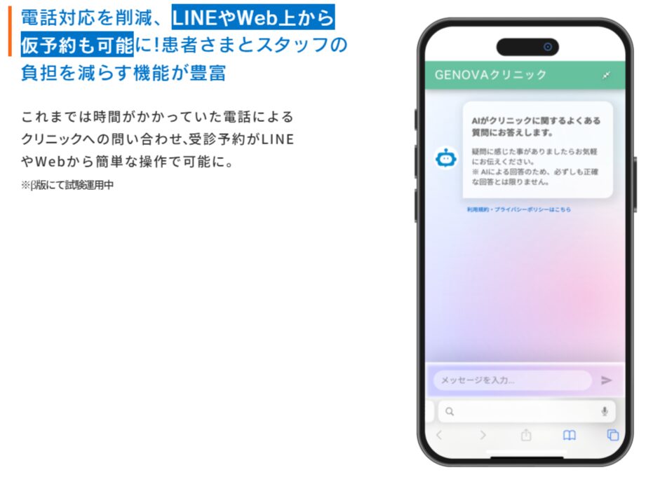 NOMOCa-AI chatは、LINE公式アカウントやWebサイトから利用できるため、患者は電話をかける前に質問できる窓口を持つことができます。