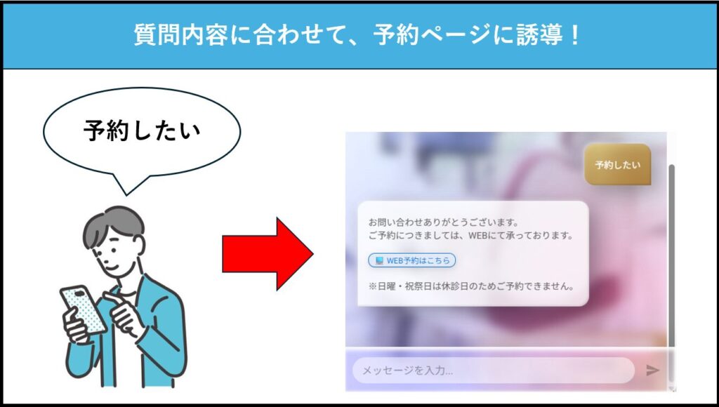 その際に重要なのが、LINEやWebチャットで質問をした流れのまま、迷わず予約案内へ進める設計になっているかどうかです。