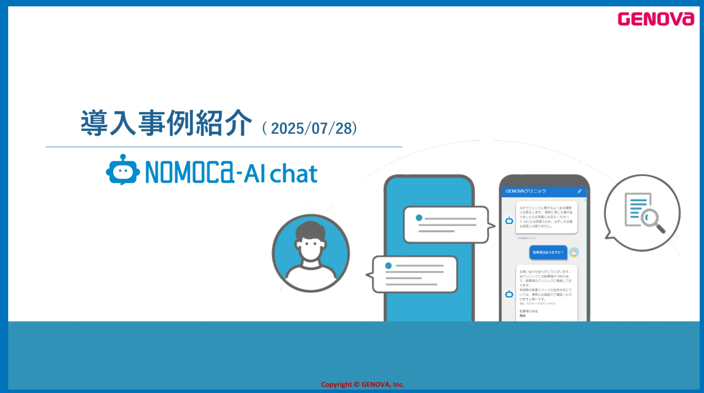 最新版の「NOMOCa-AI chat」導入事例をご紹介。クリニックの電話削減による業務効率化など、医科に絞った事例となっております。