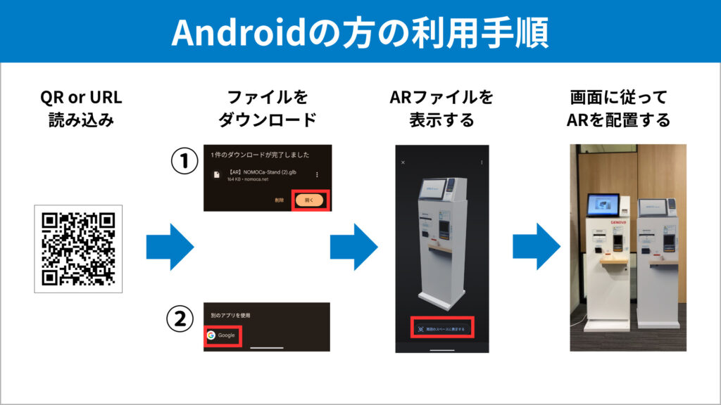 Android用リンク : https://nomoca.net/wp-content/uploads/%E3%80%90AR%E3%80%91NOMOCa-Stand.glb